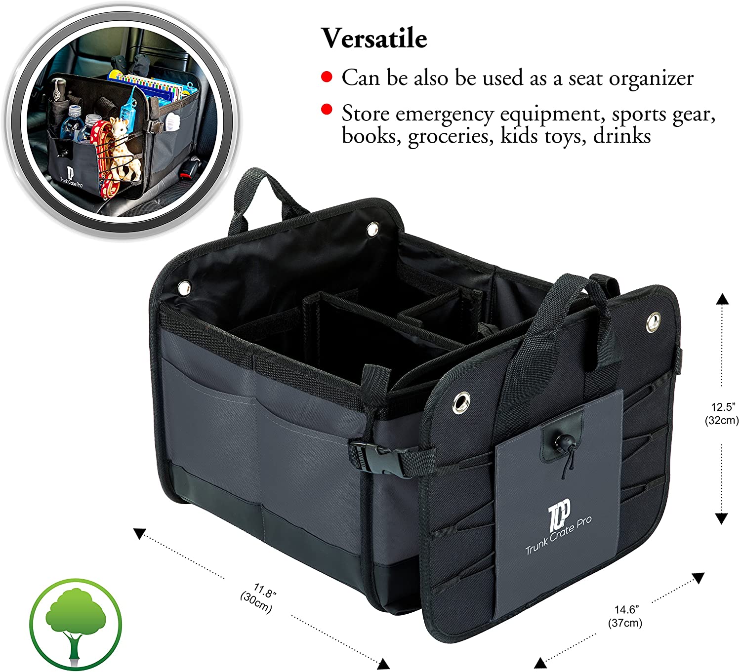 It is an Eco-Friendly professional grade, Heavy Duty Material trunk organizer with straps: Best for suv, car, truck, jeep, mini van, vehicles in Automotive Interior Accessories. It is hand crafted using premium highest grade Oxford Polyester material.