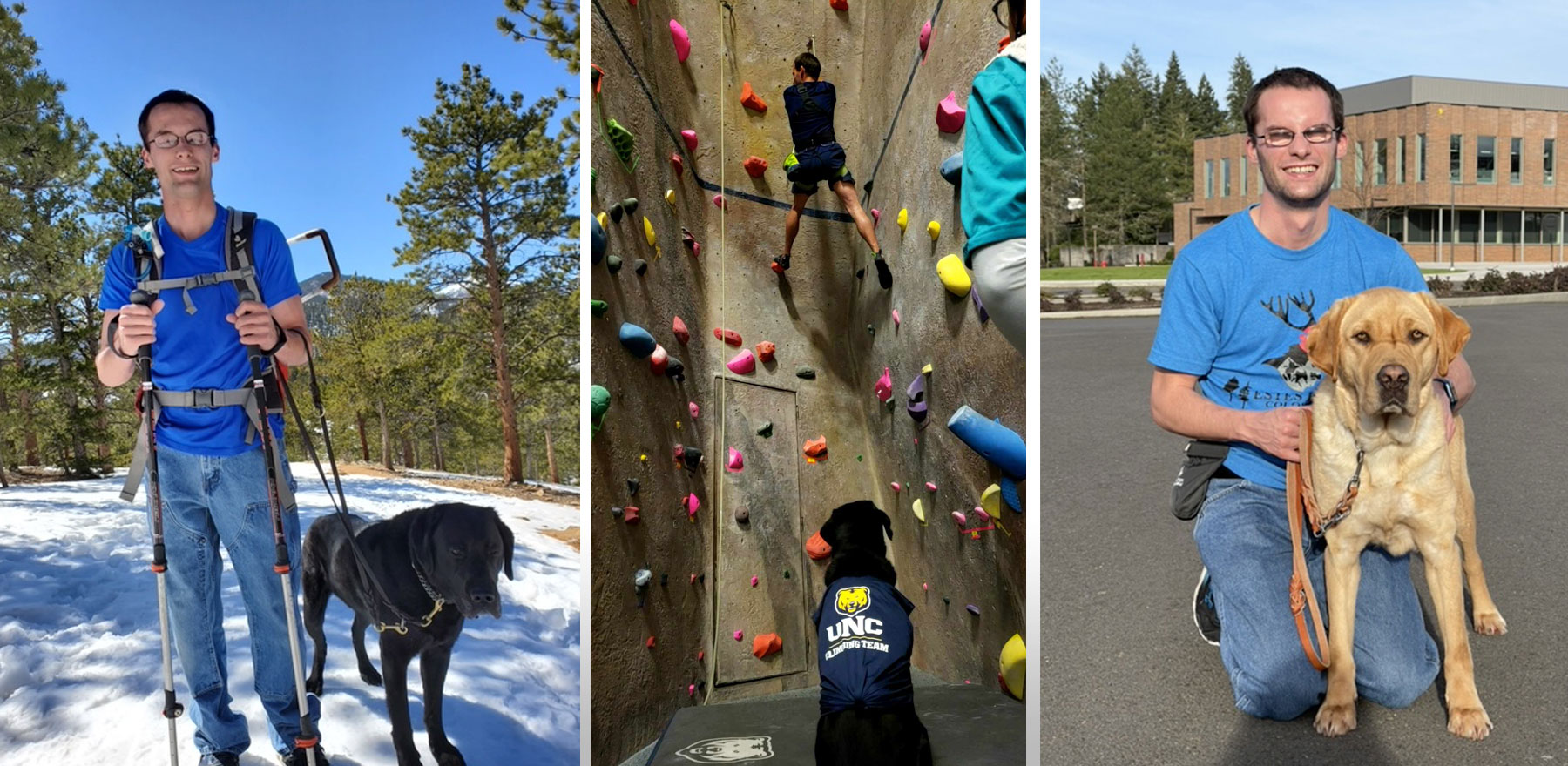 Other things I enjoy doing, when not working Talent, walking Sherman, Or playing catch or tug with the dogs, would be Rock climbing, hiking, camping, or wrestling. I’m big into the outdoors, and I don’t let my visual impairment stop me from doing any activity I set my mind to.